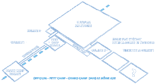 César, l’ensemble grand camp-colline-oppidum doit être aligné, formant e regione une ligne droite.
